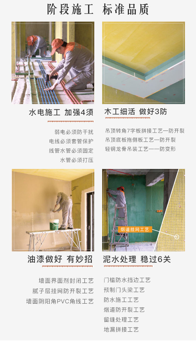 家家空氣檢測,戶戶達標,不達標免費治理,治理達到國家標準為止階段施工 標準品質