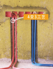 華美樂線管4變3工藝是基于承重墻條件下布管考慮,使用管徑相對較小的3分線管,通過4變3接頭連接,有效解決線管埋置深度不足的問題。更好的解決電線抽不動、散熱效果差的隱患。