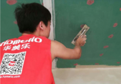 1、墻面油漆施工在批第二遍膩?zhàn)忧?,做全屋墻面,滿布玻璃纖維網(wǎng),再批第二遍膩?zhàn)痈采w。