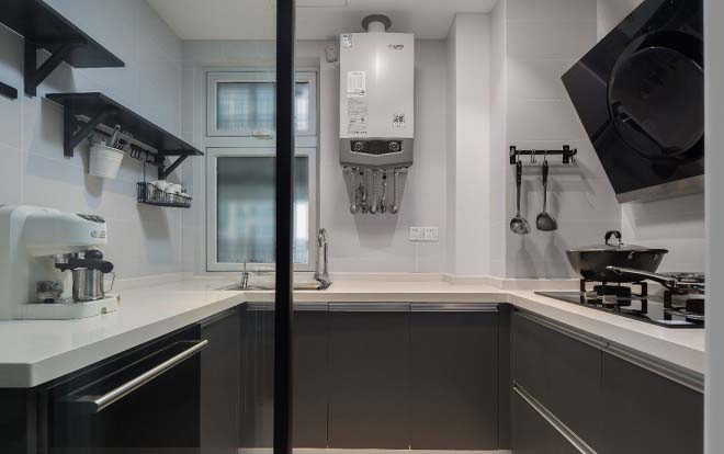 下廚也是緩解工作壓力的一大樂(lè)事,U形臺(tái)面十分符合日常烹飪習(xí)慣,夫婦兩同時(shí)洗菜、切菜、炒菜,也能行動(dòng)自如。用擱板代替常規(guī)吊柜,讓空間更開(kāi)闊輕盈,拿取也更加方便。合理安裝吊桿,也讓各類(lèi)調(diào)味品、鍋鏟、勺子有了容身之所。