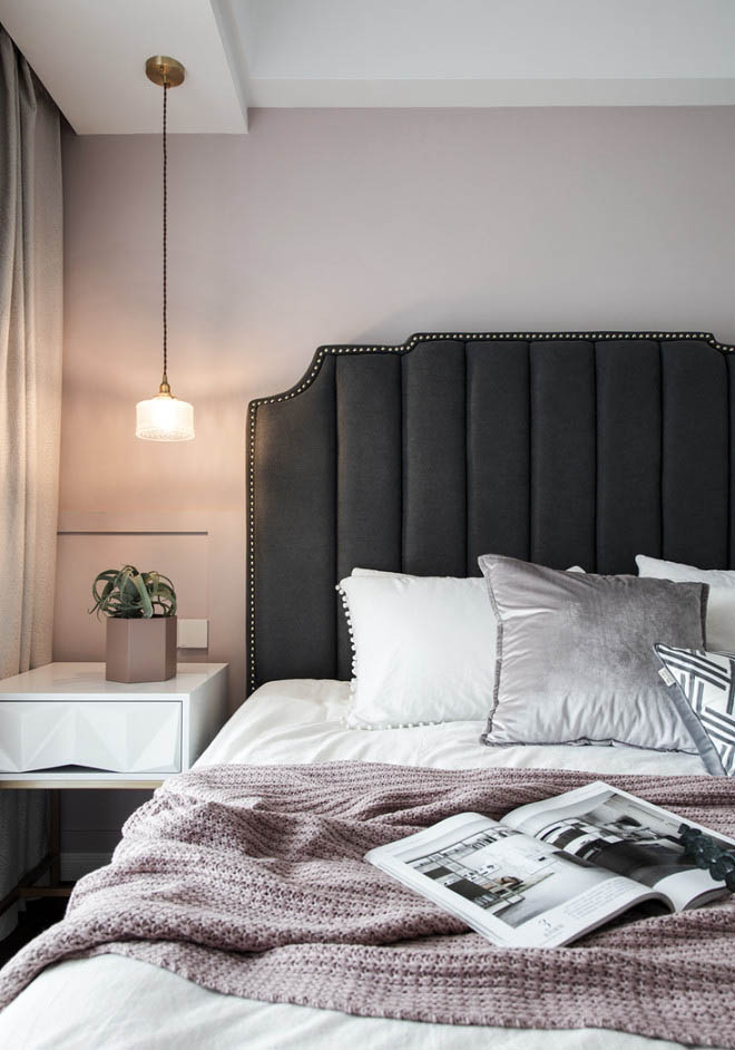 ▲當(dāng)身體擁抱床,是一天中最柔軟的時(shí)刻。粉色給人浪漫、柔軟的感覺(jué),次臥的輕柔旋律與窗外的自然氣息相融合,氳氤的空間,頗具現(xiàn)代韻味的浪漫主義情懷。