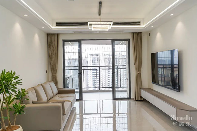 戶型是極簡風(fēng)主題整裝,色調(diào)以淺灰和米白為主,天花只做簡單的邊頂,以其簡潔明快的線條展現(xiàn)了都市生活的現(xiàn)代感和舒適性,營造出一種輕松、自然的居家環(huán)境。