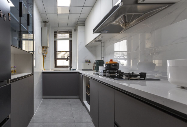 進(jìn)入玄關(guān),卸掉一天的塵土與工作上的乏累,進(jìn)入專屬于家人的那一份愜意,入門左手邊就是鞋柜,柜子1.2米高,這個(gè)高度既起到了對(duì)空間分割也不至于太過于壓抑,由原木色的柜體搭配白色的柜門組成,下部采用懸空設(shè)計(jì),可以“藏”起來六七雙鞋子,上部也預(yù)留了一排抽屜,可以用來收納出門時(shí)常帶的東西。