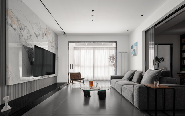 客廳在設(shè)計之初結(jié)合業(yè)主的想法,以黑白灰為設(shè)計思想核心,三者在空間里穿插平衡,留白,蘊(yùn)含著東方美學(xué)的思想,給人以無限的想象空間,白與黑的極致碰撞,融合灰色調(diào)性讓空間層次更為豐富。