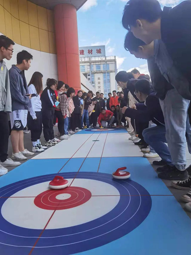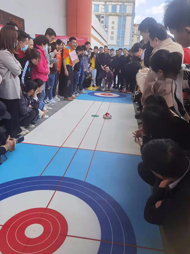 被譽為“冰上國際象棋”的旱地冰壺,是冬季奧運會項目冰壺的普及版,在每一次投擲冰壺碰撞的過程讓大家收獲了滿足感、榮譽感,比賽過程緊張激烈,比分你追我趕,好球、妙球?qū)映霾桓F,既有團隊協(xié)作保持勝利成果,也有孤膽英雄最后力挽狂瀾的成功,不到最后,一切皆有可能……