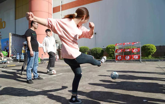 在規(guī)定時間內(nèi)通過全隊的合作,踢進龍門球數(shù)多的隊伍為勝